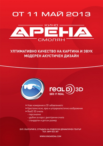 С официално събитие днес – 10 май 2013 г. отваря врати най-новата зала от веригата кино Арена в красивия родопски град Смолян.